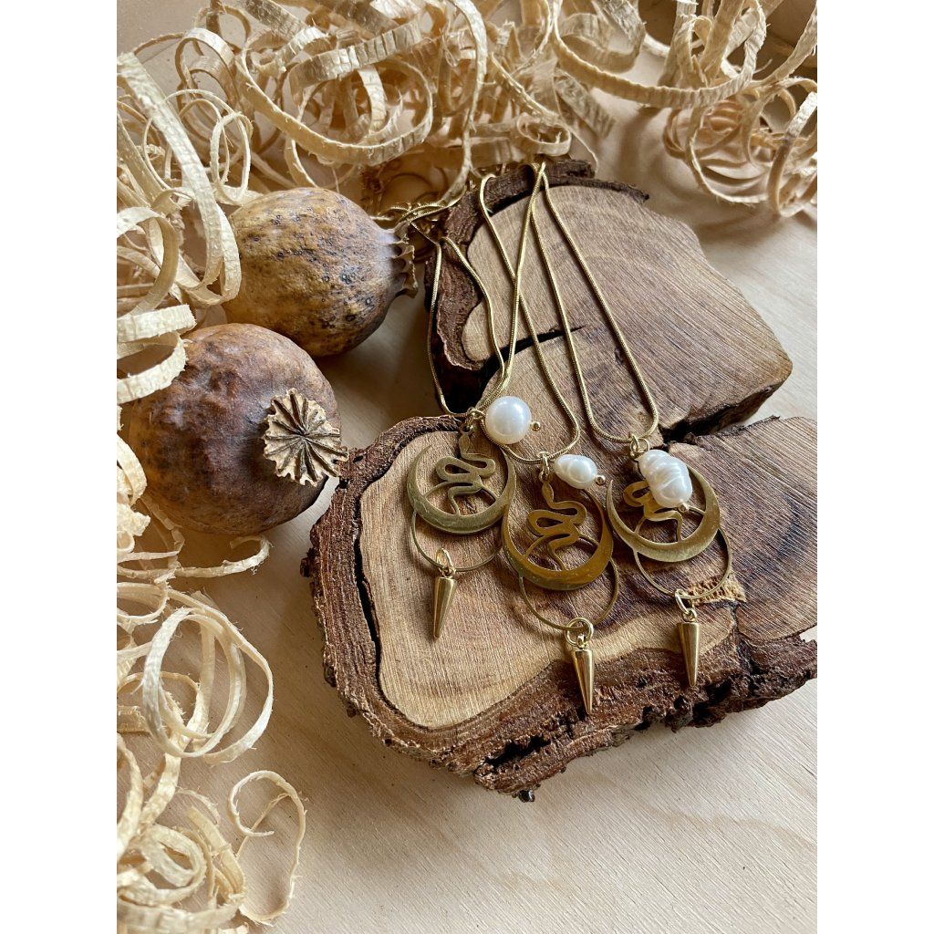 Hadinkový náhrdelník s perlou kombinuje jemnost perly s výrazným kovovým prvkem, který působí trochu tajemně, trochu magicky a zároveň elegantně.