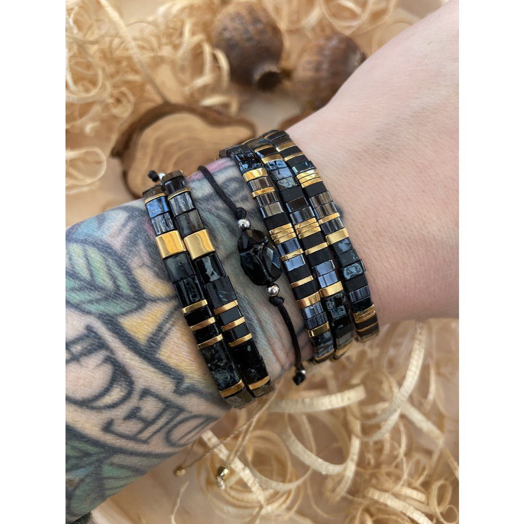 Miyuki Tila náramek Mramor kombinuje hluboké tmavé tóny se zlatými detaily, které působí výrazně, elegantně a dodají tvému stylu sebevědomý nádech.