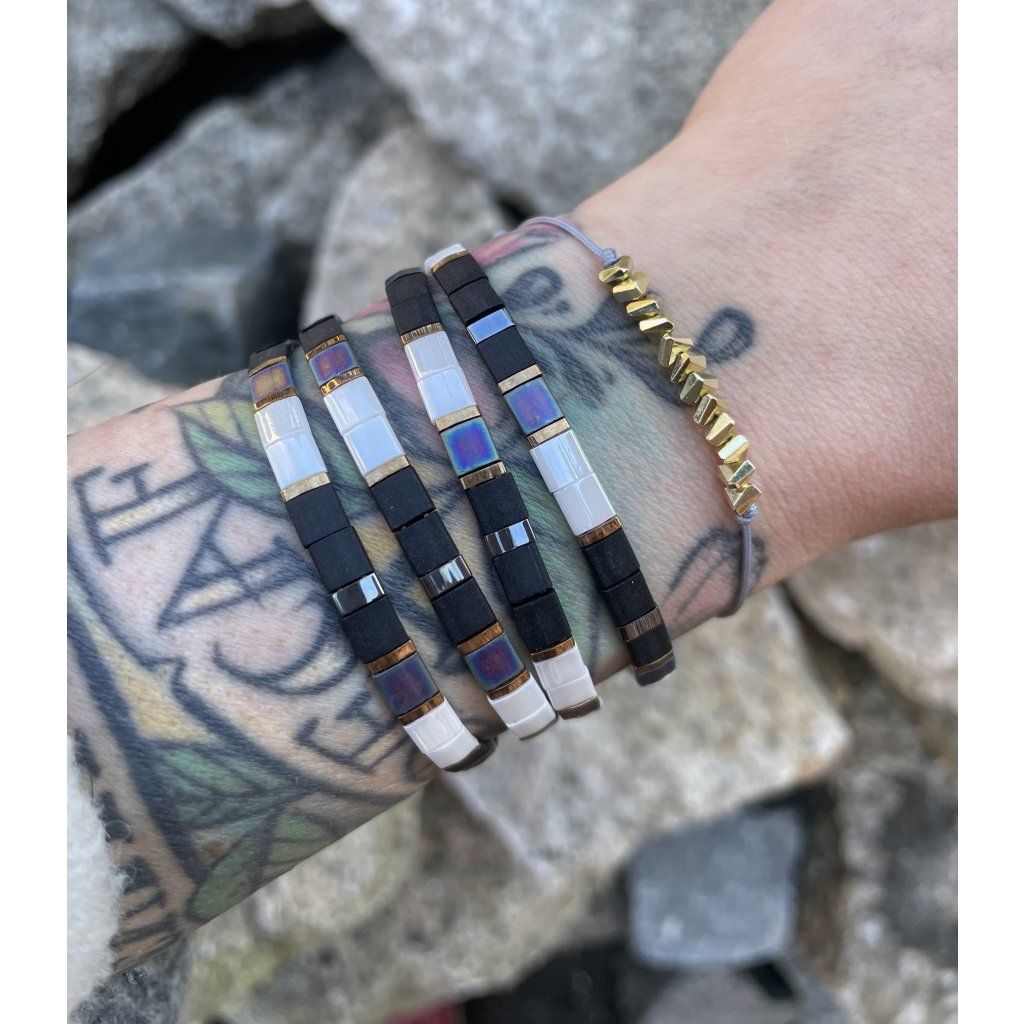 Černobílý Miyuki Tila náramek spojuje čistotu bílé s hloubkou černé, díky čemuž působí elegantně, výrazně a snadno se kombinuje s každým outfitem.