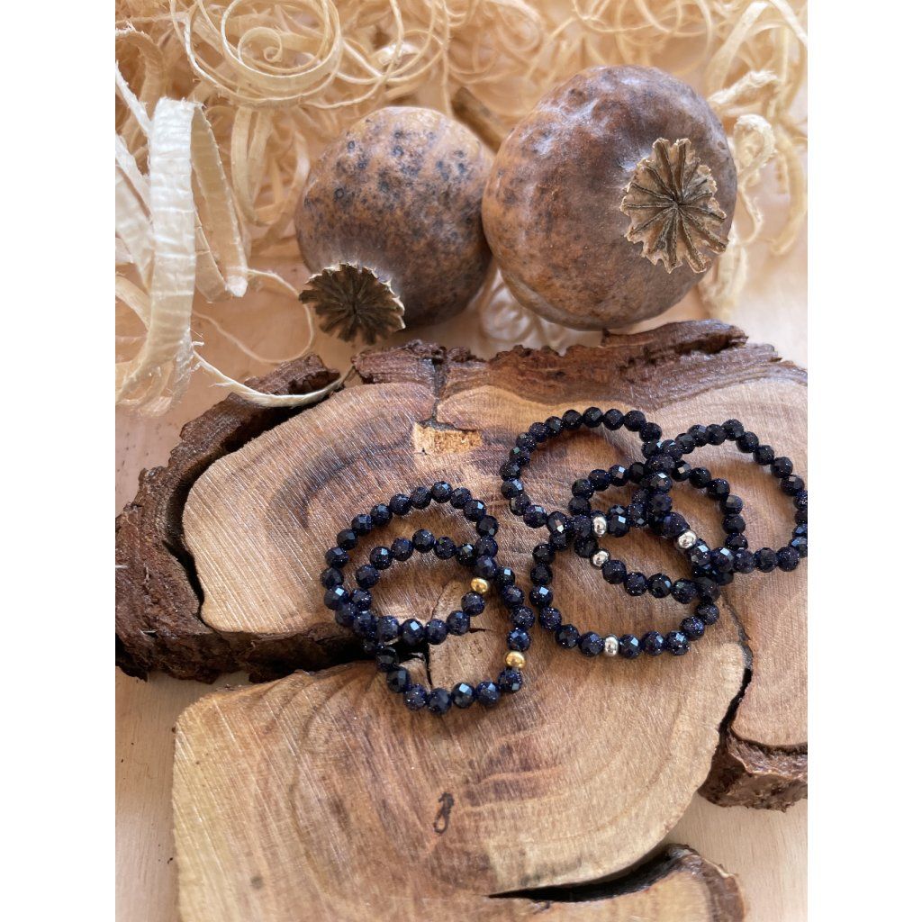 Tento prstýnek je tvořen z drobných minerálních korálků z modrého živce, které jsou pečlivě vybírané a broušené – tzv. fasetované. Díky tomu získává jemný třpyt a zajímavý světelný efekt.