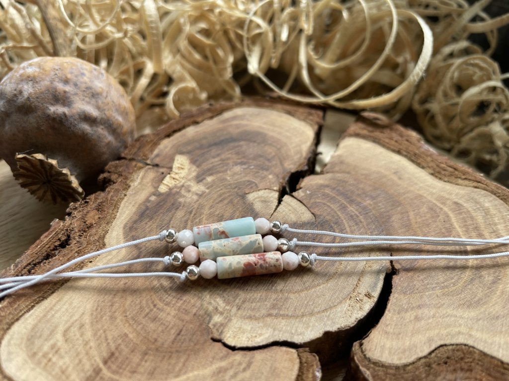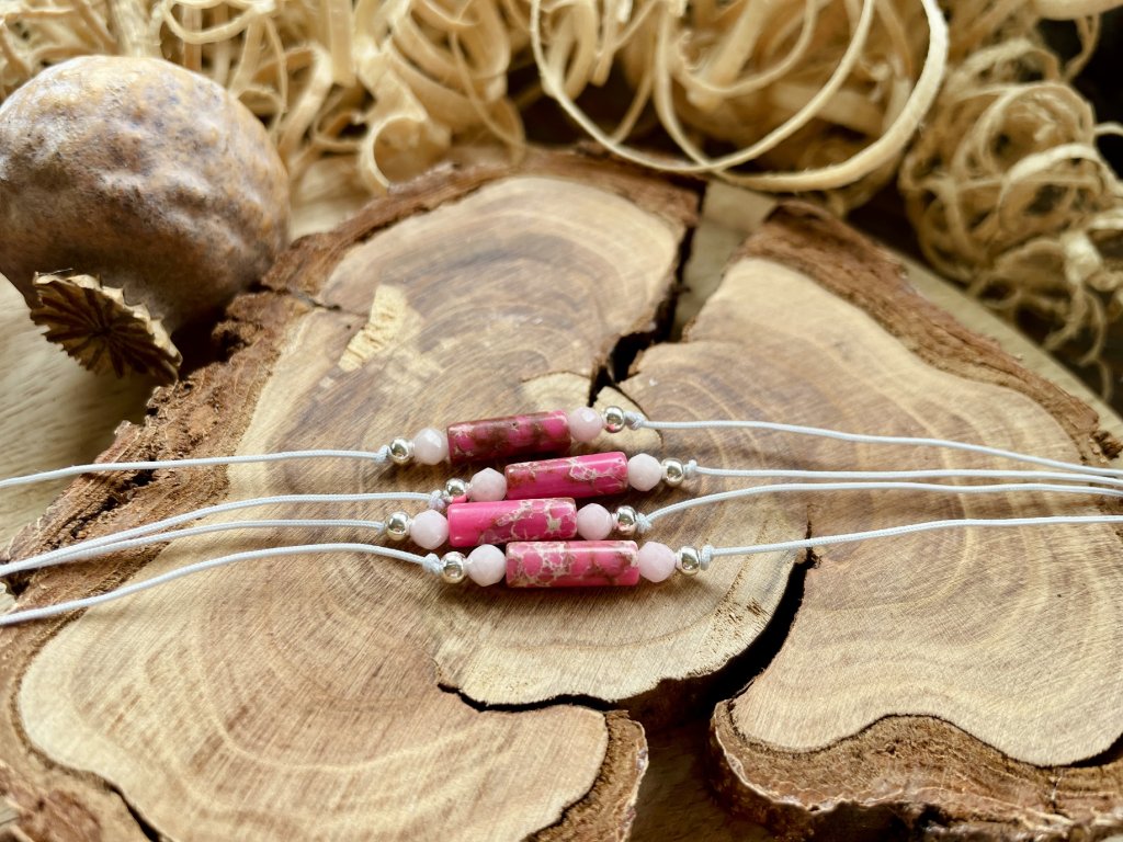 Vychytaný mix 4mm korálků a minerálních válečků. Šňůrky jsou měkké a pohodlné, úplně zapomeneš, že je máš na ruce! No, skoro- protože až s nimi vyrazíš ven, budeš středem pozornosti! Ať už jdeš do práce, nebo na večírek, dodají ti šmrnc!
